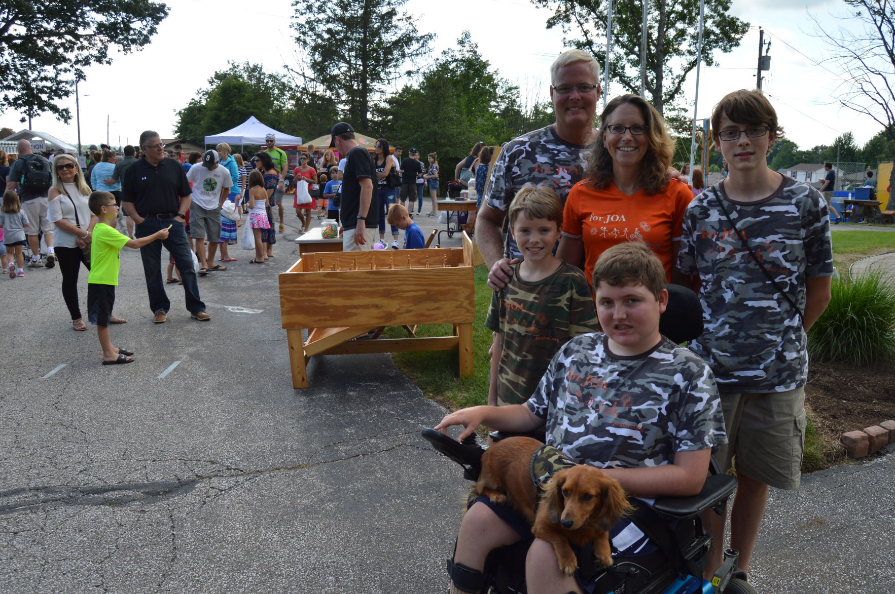 This event marks 10 years the Dumm family has been fighting Duchenne Muscular Dystrophy and trying to find a cure through their biggest fundraiser of the year Picnic in the Park. Tony and Jen's children are Wade, 10, John Owen, 13, and Rutger, 15. Larry is John Owen's service dog. Photo by JAIME ANTON