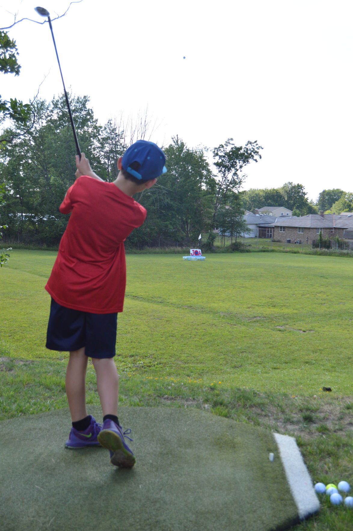Jaden Hudach, 13, is a classmate of John Owen's at St. Albert the Great School. He won the hole-in-one contest two years ago and tried to sink a shot this year but came up a bit short here. Photo by JAIME ANTON