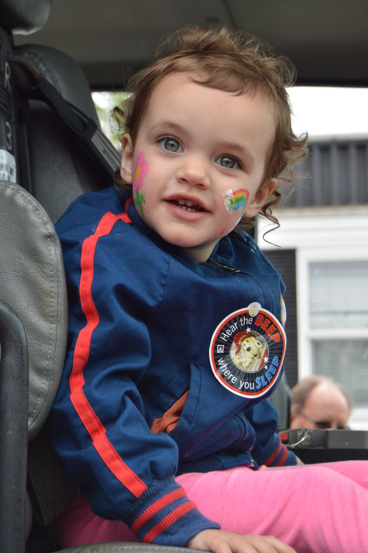 Two-year-old Hannah Blaha, of North Royalton, was all smiles as she dabbled in a little of everything at the fair: the firetrucks, face painting, popcorn, stickers. Photo by JAIME ANTON