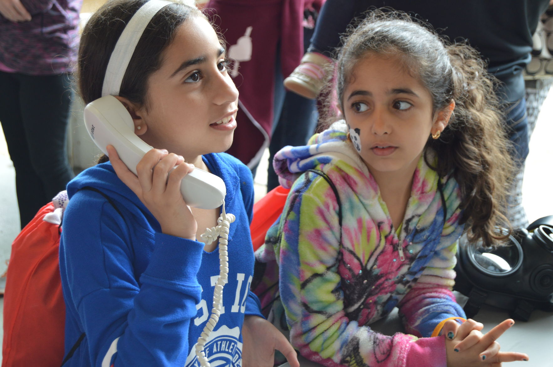 Marina Moawad, 9, and her friend Ereny Potroos, 7, of North Royalton, practiced making 911 calls during the safety fair. Photo by JAIME ANTON