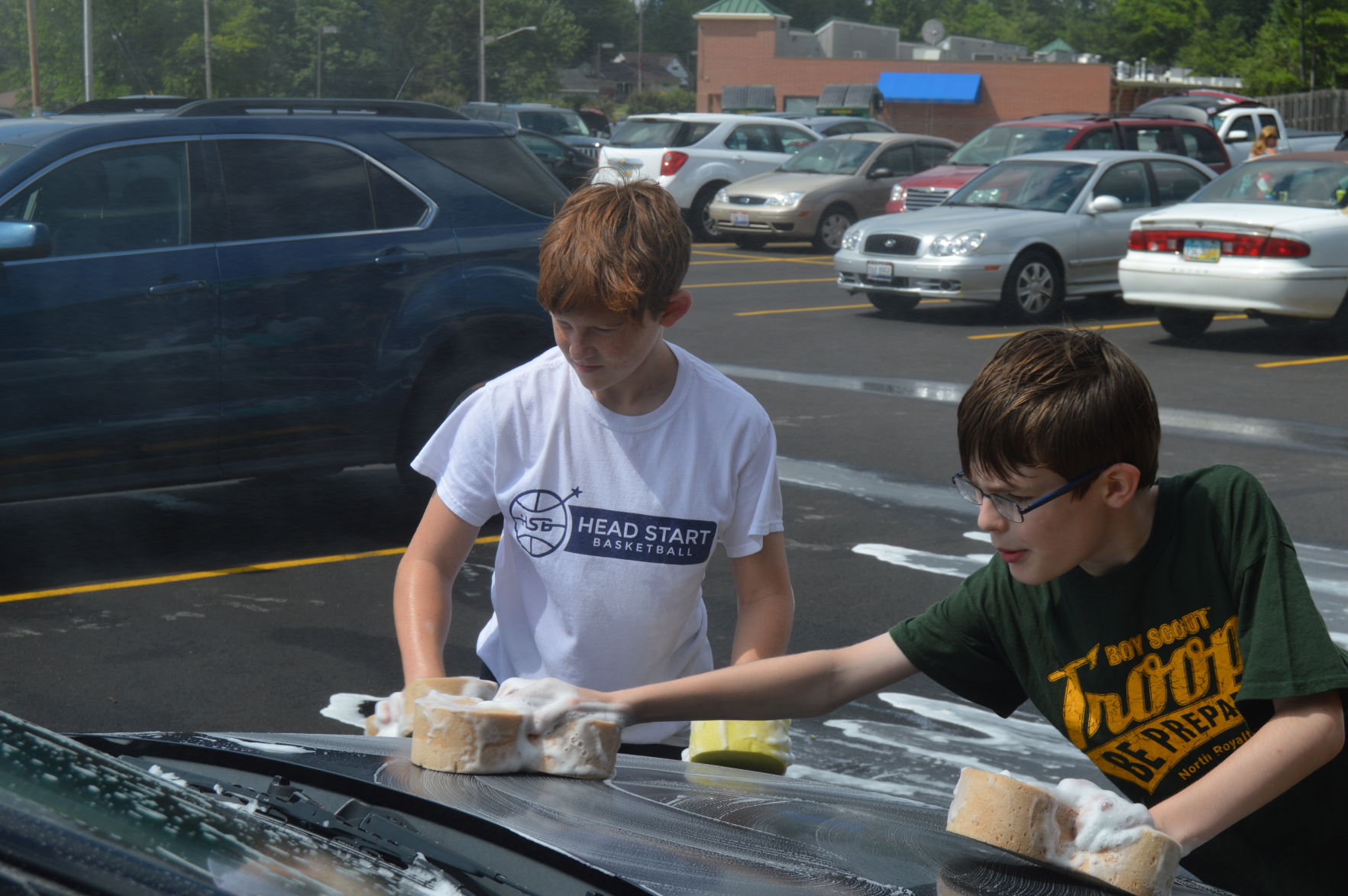 “It’s a very good community and we want to help out our town. And it’s just a great cause,” she said while her son Darren, 10, and scout Connor Krause, 13, scrubbed down a car.