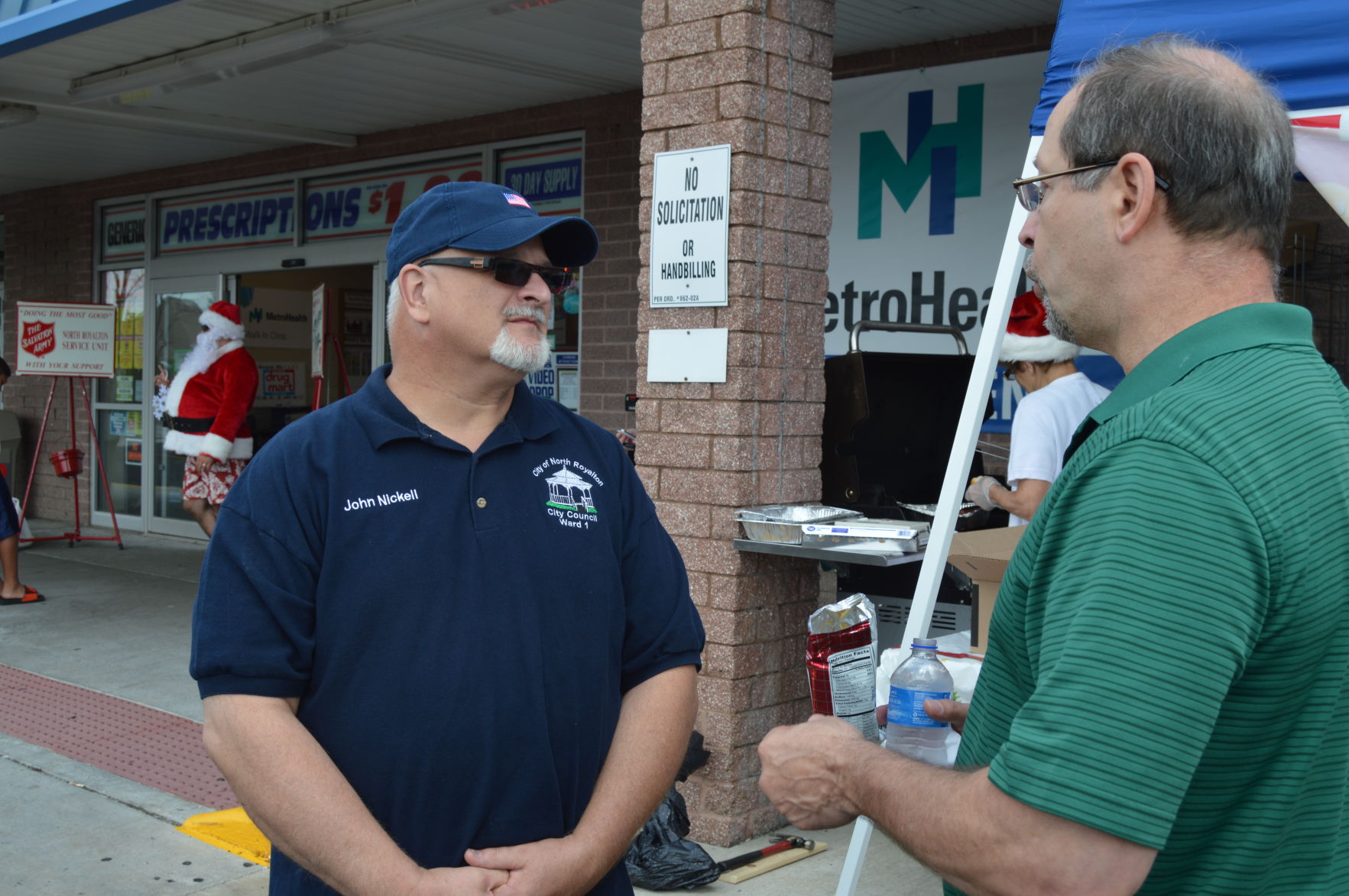 Ward 1 Councilman John Nickell and Council President Larry Antoskiewicz both stopped by to support the cause. Ward 3 Councilman Dan Langshaw is Santa Claus in the background. Photo by JAIME ANTON